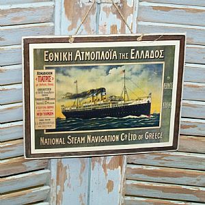 Πινακίδα "Υπερωκεάνειος Ελληνική Ατμοπλοϊα" ξύλινη χειροποίητη