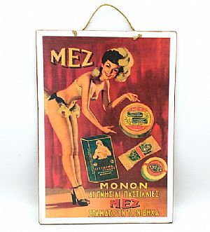 Vintage πινακίδα ΜΕΖ παστίλιες για τον βήχα ξύλινη χειροποίητη