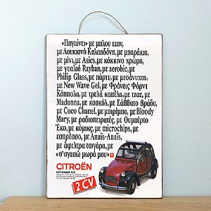 Ξύλινη πινακίδα αφίσα Citroen 2CV vintage χειροποίητη