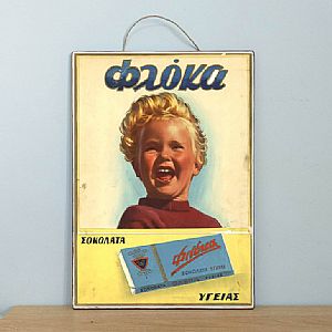 Ξύλινη πινακίδα αφίσα Σοκολάτα Υγείας Φλόκα vintage χειροποίητη