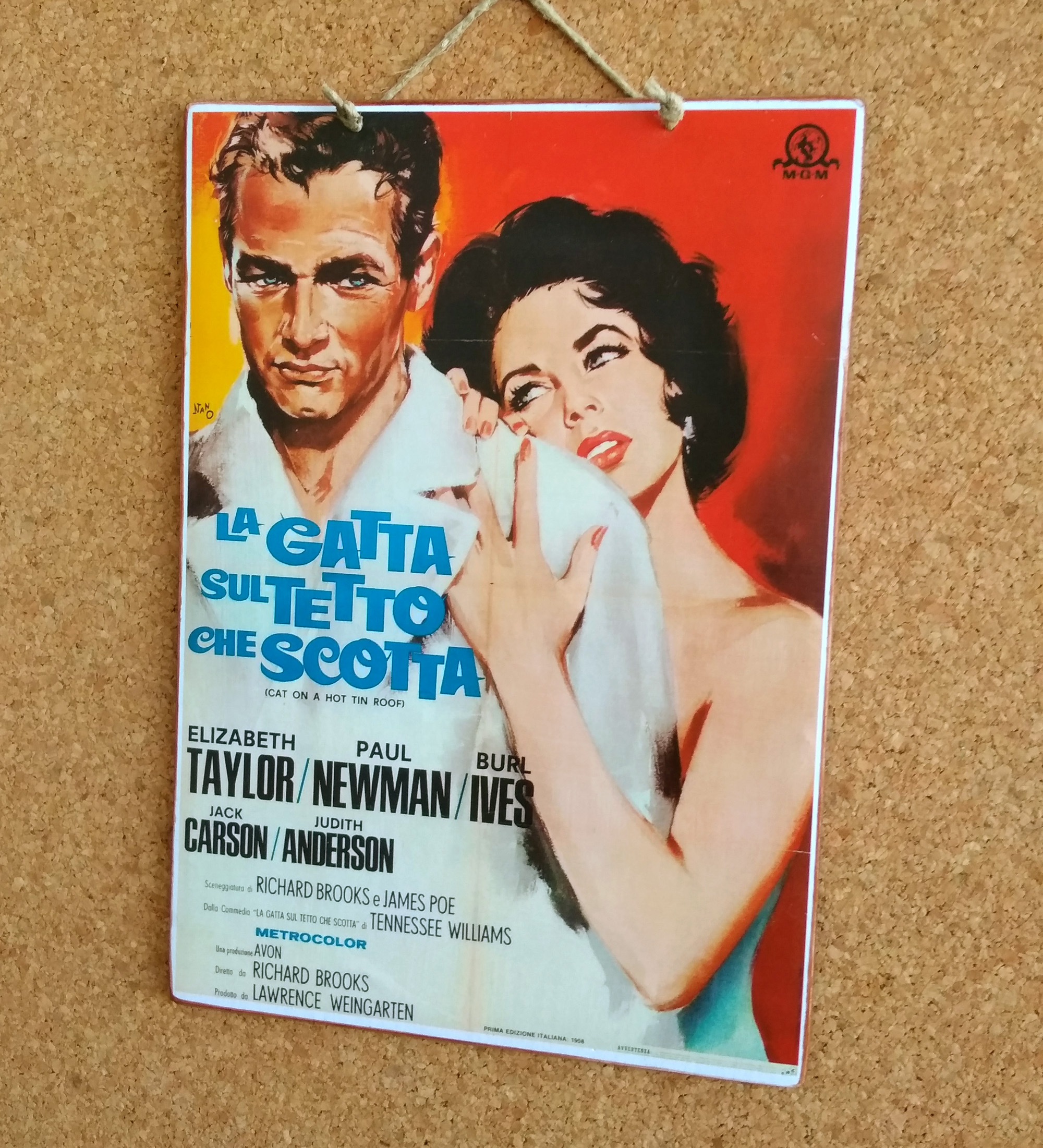 Vintage χειροποίητη κινηματογραφική αφίσα Cat On A Tin Roof (Λυσσασμένη Γάτα) του 1958, εσωτερικού χώρου από mdf ξύλο με τεχνοτροπία παλαίωσης. Καλυμμένη από οικολογικό βερνίκι για μακροχρόνια διατήρηση, για την αφαίρεση της σκόνης χρησιμοποιείτε μόνο στεγνό πανί.