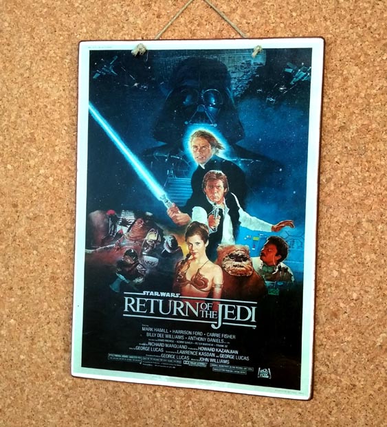 Vintage χειροποίητη κινηματογραφική αφίσα Star Wars: Return Of The Jedi (Ο Πόλεμος Των ʼστρων: Η Επιστροφή Των Τζεντάι) του 1983, εσωτερικού χώρου από mdf ξύλο με τεχνοτροπία παλαίωσης. Καλυμμένη από οικολογικό βερνίκι για μακροχρόνια διατήρηση, για την αφαίρεση της σκόνης χρησιμοποιείτε μόνο στεγνό πανί.