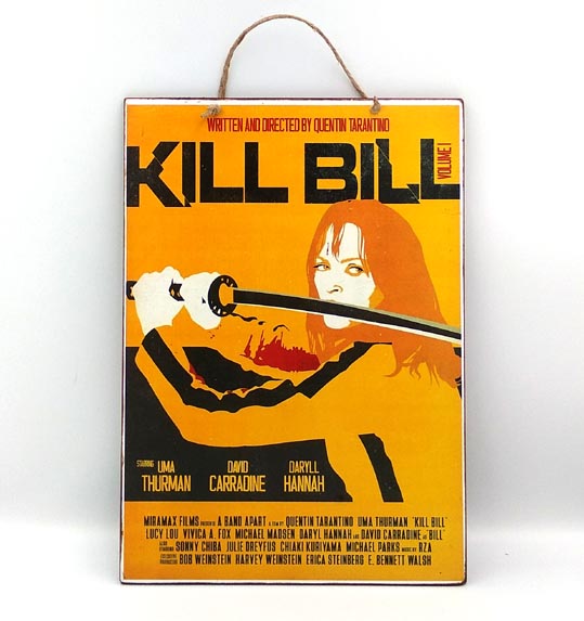 Vintage χειροποίητη κινηματογραφική αφίσα Kill Bill Vol.1 του 2003, εσωτερικού χώρου από mdf ξύλο με τεχνοτροπία παλαίωσης. Καλυμμένη από οικολογικό βερνίκι για μακροχρόνια διατήρηση, για την αφαίρεση της σκόνης χρησιμοποιείτε μόνο στεγνό πανί.