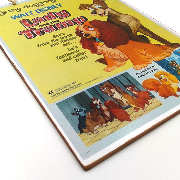 Vintage χειροποίητη κινηματογραφική αφίσα Lady And The Trump (Η Λαίδη Και Ο Αλήτης) του 1955, εσωτερικού χώρου από mdf ξύλο με τεχνοτροπία παλαίωσης. Καλυμμένη από οικολογικό βερνίκι για μακροχρόνια διατήρηση, για την αφαίρεση της σκόνης χρησιμοποιείτε μόνο στεγνό πανί.