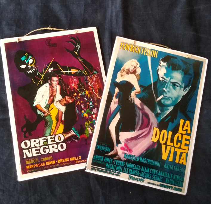 Vintage χειροποίητη κινηματογραφική αφίσα Orfeo Negro του 1959, εσωτερικού χώρου από mdf ξύλο με τεχνοτροπία παλαίωσης. Καλυμμένη από οικολογικό βερνίκι για μακροχρόνια διατήρηση, για την αφαίρεση της σκόνης χρησιμοποιείτε μόνο στεγνό πανί.